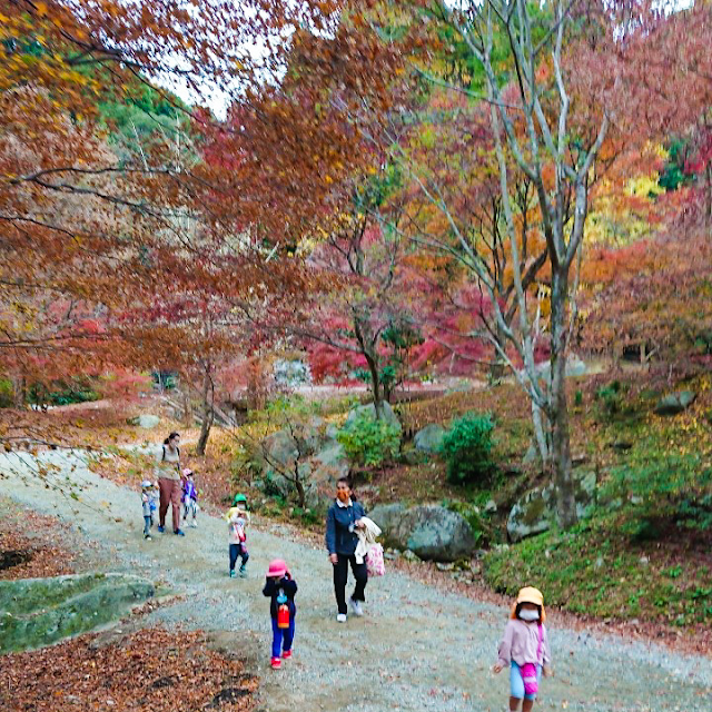 色鮮やかな落ち葉の絨毯が一面に広がっています。⠀